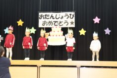 11月生まれのお友だちお誕生日おめでとう🎂 たくさん食べて、元気いっぱい遊んで、心も体も大きくなってね♡ 年少クラスさんがミニオンダンスをしてくれました👓🎵