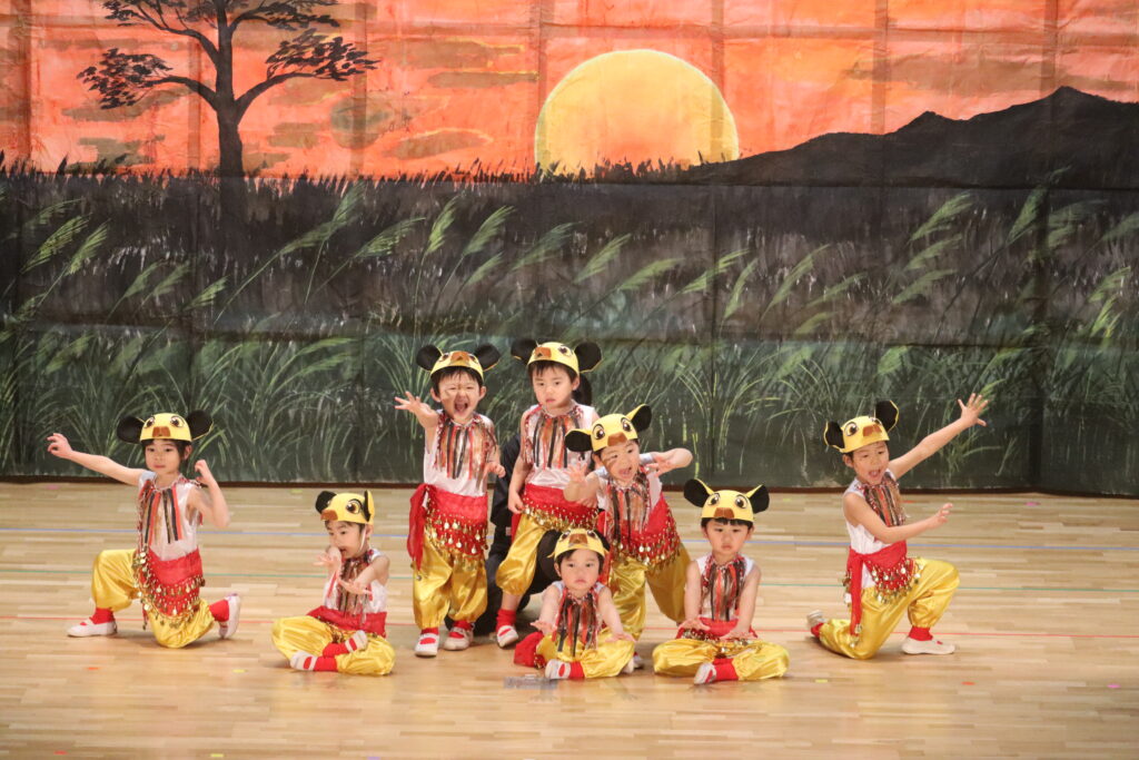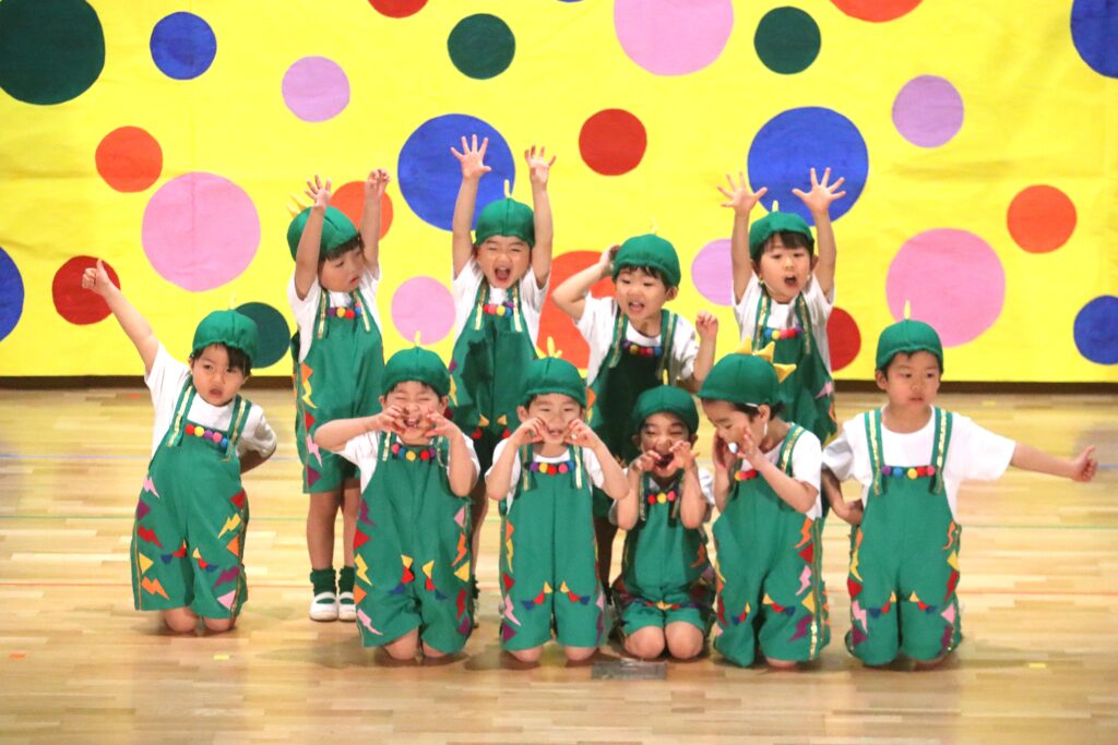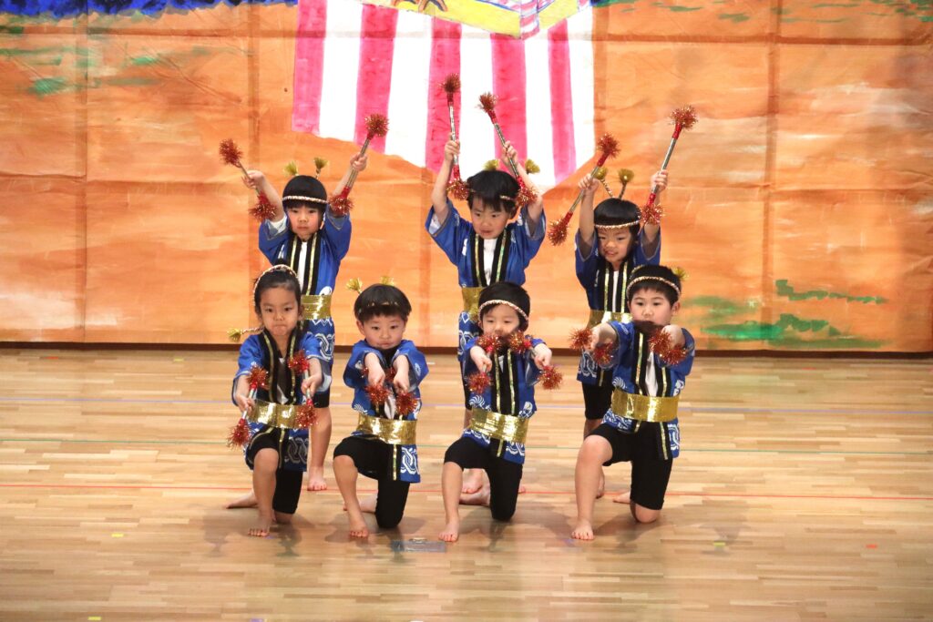 ドキドキ・・・♡少し緊張した表情で登園した子どもたち。舞台に上がると元気いっぱい!「かっこいいところを見てもらいたい!」そんな子どもたちの思いが伝わる素敵なお遊戯会でした。