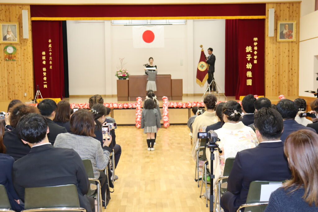 年長組のお友だちが保護者の方や先生方に見守られ、銚子幼稚園を卒園していきました。